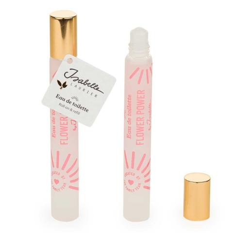 Petit flacon roll-on & refill d'eau de toilette fleurie Flower Power d'Isabelle Laurier