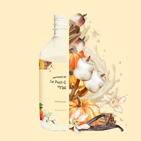 Découvrez notre Parfum pour bougies Citrouille vanillée Un mélange gourmand de guimauve, citrouille, vanille et cannelle, inspiré d'un latte épicé.