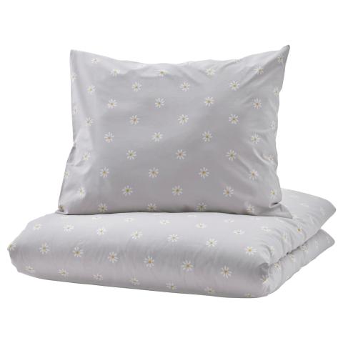 NATTSLÄNDA housse de couette et 1 taie, motif floral gris/blanc, 150x200/50x60 cm