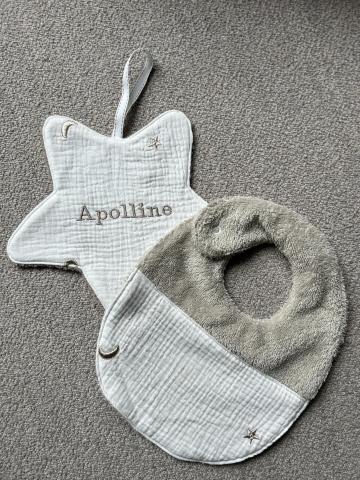Ensemble bavoir + attache tétine en forme d'étoile brodé
