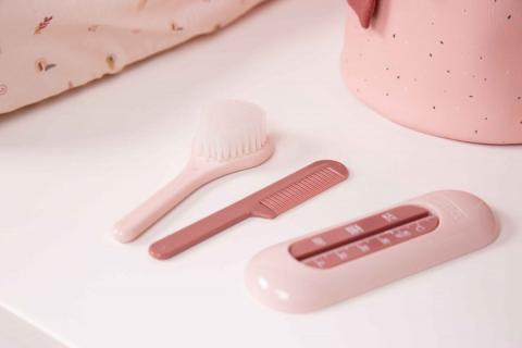 Ce set de coiffure rend votre bébé encore plus beau. Vous découvrirez rapidement qu'il est agréable de faire un massage du cuir chevelu avec la fine brosse. De cette façon, vous empêchez la dermite séborrhéique et vous stimulez les follicules pileux. Avec le peigne à dents fines vous pouvez ensuite parfaitement bien mo