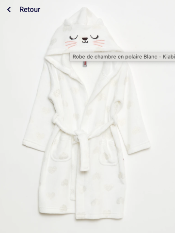 en toute liberté. Il est possible d'ajouter toutes vos envies cadeaux et de recevoir les dons directement sur votre compte. Avec les dons reçus, vous êtes alors libre d'aller acheter vos produits (comme ce 'Peignoir Kiabi