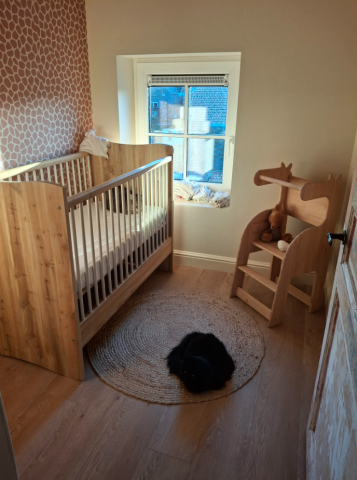 Une peinture de velours assortie à son papier peint girafe pour que Diane se sente comme chez elle. 🦒🦒
