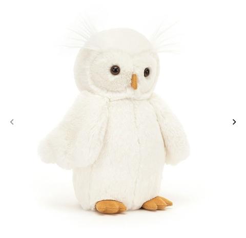 Cette ravissante chouette en peluche Bashfull Owl de Jellycat est toute blanche et douce. Elle ira à merveille dans une chambre de bébé ou d'enfant.
