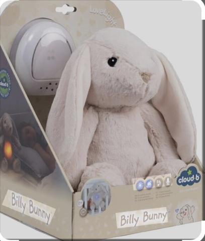 Belle petite Peluche lapin mais elle ne fait pas seulement office de peluche! C’est aussi une veilleuse qui fait de la musique et de la lumière douce afin de rendre nos nuits plus douces (enfin on l’espère)