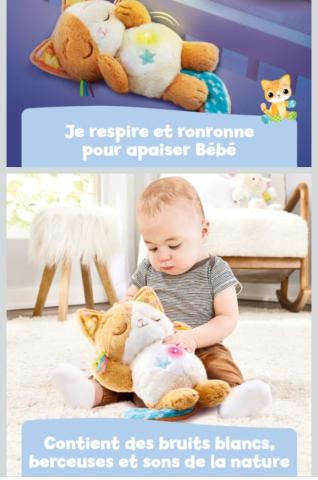 Peluche chat apaisante pour endormissement bébé. Veilleuse, bruit blanc, musique douce, ronronnement