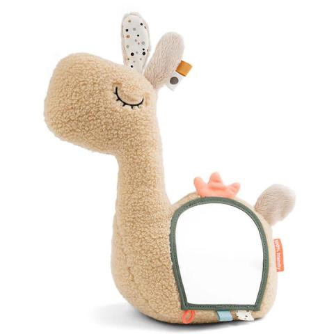 Quoi de mieux que ce joli lama pour stimuler, amuser et encourager votre tout-petit à passer du temps sur le ventre. Il va adorer se découvrir dans le miroir et tester les différentes textures : les étiquettes colorées, les textures à toucher et les bruits de papier . Le plus : Il est lesté par du sable pour tenir debo