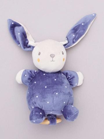 Il est tout beau et tout doux ! - Peluche lapin - Toucher doux - Anneaux à tirer pour lancer la musique- Hauteur : 23 cm environ