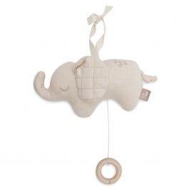 Trek zachtjes aan de houten ring van de Elephant Tales muziekhanger van Jollein om een kalmerend wiegeliedje af te spelen.