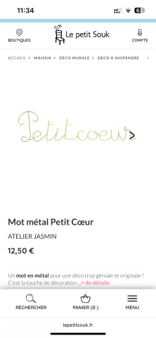 Ce produit est extrait d'une liste de naissance déposée sur Kadolog. Kadolog permet de créer des listes de naissance en toute liberté. Il est possible d'ajouter toutes vos envies cadeaux et de recevoir les dons directement sur votre compte. Avec les dons reçus, vous êtes alors libre d'aller acheter vos produits (comme ce 'Petit cœur déco ') où et quand vous le souhaitez.
