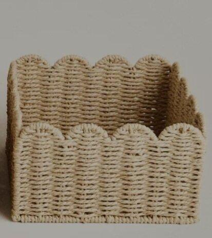 Panier en fibre de forme rectangulaire, avec une finition ondulée.