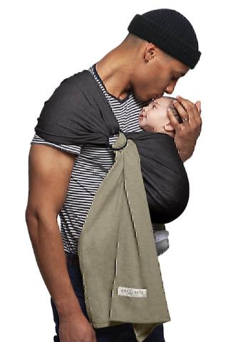 La Provence s'invite dans votre écharpe sling Love Radius. Couleur olive noire et verte ! Portez bébé simplement en Petite Écharpe Sans Noeud.