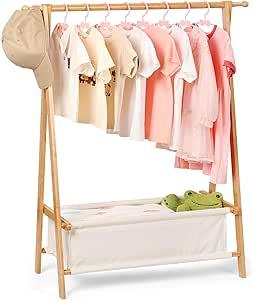 Relquorax vêtement Porte-vêtements pour enfants avec rangement, costume, bambou (couleur naturelle) : Amazon.com.be: Cuisine et maison