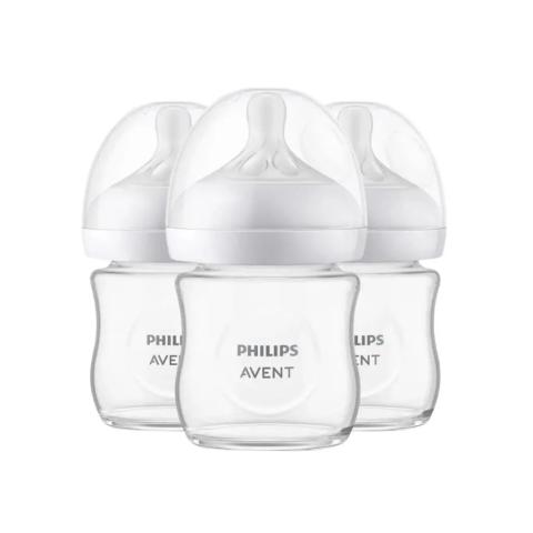 Les 3 biberons en verre Natural Response 120 ml de Philips AVENT imitent le sein maternel, ce qui facilite la combinaison de l'allaitement au sein et au biberon. De plus, ils réduisent également les coliques chez votre bébé. Ils conviennent à tous les bébés !