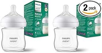 Philips Avent Biberon en verre à Réponse Naturelle - 120 ml, sans BPA pour les nouveau-nés de 0 mois et + (modèle SCY930/01) (Lot de 2)