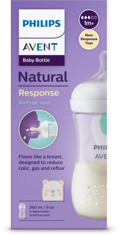 Biberon avec tétine qui fonctionne comme un sein afin d'améliorer le moment de tétée du bébé. Favorise le rythme unique de succion, d'ingestion et de respiration. La valve AirFree permet d'éviter que l'air n'entre dans l'estomac du bébé et permet donc de réduire les risques de coliques. Tétine débit 3.