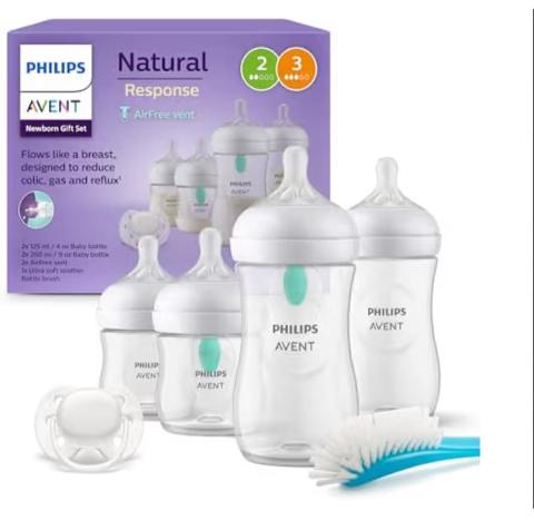 Philips Avent Kit biberons avec valve AirFree pour nouveau-né – 4 biberons à Réponse Naturelle, sucette ultra-douce et goupillon pour les bébés âgés de 0 à 12 mois (modèle SCD657/11) : Amazon.com.be: Baby Products