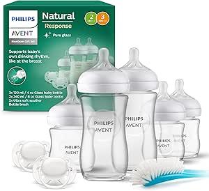 Philips Avent Kit biberons en verre Natural Response pour nouveau-né - 5 biberons, 2 sucettes Ultra Soft 0-6 mois, goupillon, sans BPA (modèle SCD879/11) : Amazon.com.be: Bébé et Puériculture