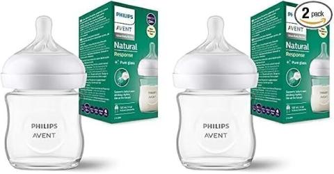Philips AVENT Natural Response Glass Bottle - 120 ml, BPA Free for Newborns 0 Months and Above (Model SCY930/01) (Pack of 2) : Amazon.fr: Baby Products