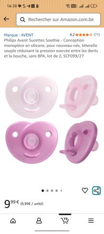 en toute liberté. Il est possible d'ajouter toutes vos envies cadeaux et de recevoir les dons directement sur votre compte. Avec les dons reçus, vous êtes alors libre d'aller acheter vos produits (comme ce 'Philips Avent Soothie Soothie Pacifiers - One-Piece Design for Newborns, Soft Nipple Reduces Pressure Between Teeth and Mouth, BPA Free, Set of 2, SCF099/27 : Amazon.com.be: Grocery