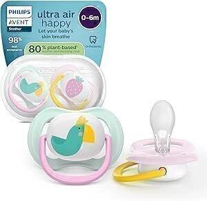 Philips AVENT Ultra Air Pacifiers - Orthodontic, for Babies 0-6 Months, Symmetrical Soft Silicone Pacifier, BPA-Free, with Sterilisation Case, Set of 2, SCF080/24 : Amazon.fr: Baby Products