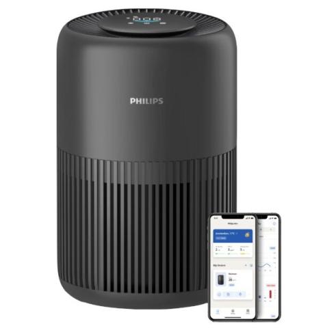 Contrôlez facilement le Philips PureProtect Mini 900 Series AC0951/13 à distance via l'appli. Connectez le purificateur d'air à l'appli Philips Air+ pour surveiller la qualité de l'air et allumer l'appareil à distance. Ce purificateur d'air est doté de capteurs intelligents qui mesurent l'air 1000 fois par seconde. Il ajuste automatiquement son fonctionnement s'il détecte de l'air pollué. Le filtre HEPA à 3 couches filtre 99,97 % des plus petites particules de l'air. Le purificateur purifie des pièces jusqu'à 50 mètres carrés. Il purifie même les pièces de 20 mètres carrés en seulement 12 minutes. Sa petite taille permet de le placer facilement sur un bureau ou une table. Vous pouvez aussi l'utiliser dans la chambre à coucher. Dans son mode sommeil silencieux, son niveau sonore n'est que de 20,5 décibels.