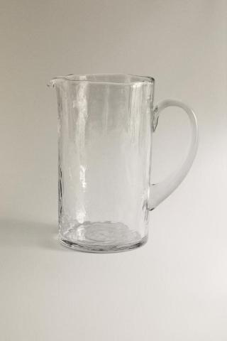 Pichet fabriqué en verre à effet martelé.