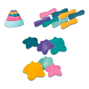 Pierres d'équilibre, 6 pcs TOYLINO®. antidérapantes, charge max. admise : 70 kg, choix entre étoile, pierres rectangulaires et pierres rondes (empilables), conviennent aux enfants à partir de 18 mois