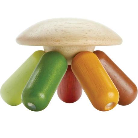 Un jeu de dextérité et de coordination œil/mains. Cette petite pieuvre à 5 tentacules qui bougent (articulation avec une cordelette dans le bois). Bonne préhension par le bébé, il peut facilement appuyer sa main sur la tête pour faire bouger la pieuvre.