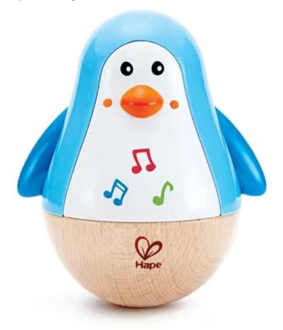 🐧 Pingouin Culbuto Musical - Le Pingouin Culbuto Musical de Hape est un jouet en bois, coloré et sonore. C'est le cadeau idéal, pour une naissance ou un anniversaire, pour bébé dès 6 mois. Votre enfant s'amusera devant ce joli pingouin qui joue des notes mélodiques tout en vacillant. De quoi rendre bébé heureux face à ce charmant pingouin tout drôle.