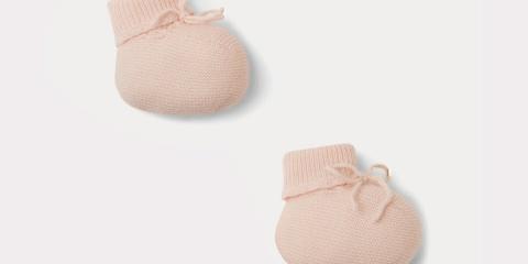 This set, which features the House's emblematic cashmere accessories in pale pink, is ideal for baby's first outings.The Peruvian-style pompom hat will keep your little one's ears warm, the booties with elegant bows and comfortable cuffs will wrap baby's little feet in infinite softness, while the mittens add a reassur