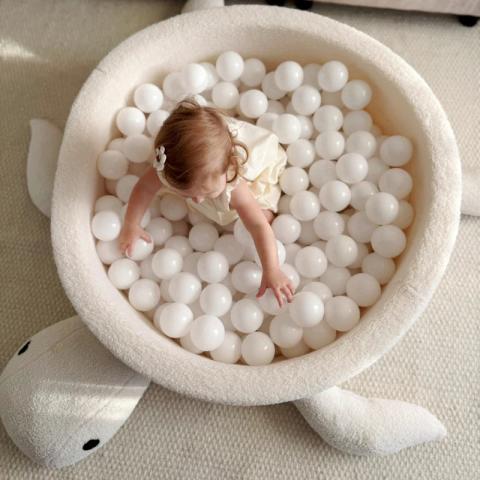 Une piscine à balles en forme de tortue, douce et originale, pour stimuler l’éveil sensoriel et décorer la chambre avec style. 200 balles au choix.