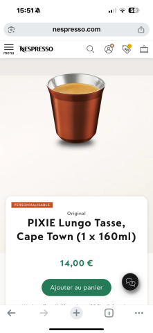 Ce produit est extrait d'une liste de cadeaux (Anniversaire, Noël, ...) déposée sur Kadolog. Kadolog permet de créer des listes de cadeaux (Anniversaire, Noël, ...) en toute liberté. Il est possible d'ajouter toutes vos envies cadeaux et de recevoir les dons directement sur votre compte. Avec les dons reçus, vous êtes alors libre d'aller acheter vos produits (comme ce 'Pixie Lungo Tasse, Cape Town | Nespresso ') où et quand vous le souhaitez.