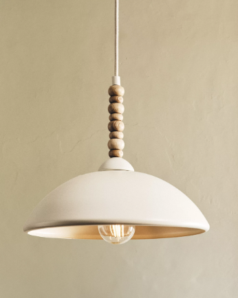 Plafonnier en métal orné de perles en bois.