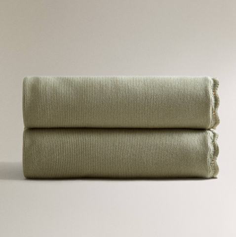 Plaid pour enfant en tricot de couleur unie.