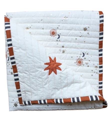 Ce produit est extrait d'une liste de naissance déposée sur Kadolog. Kadolog permet de créer des listes de naissance en toute liberté. Il est possible d'ajouter toutes vos envies cadeaux et de recevoir les dons directement sur votre compte. Avec les dons reçus, vous êtes alors libre d'aller acheter vos produits (comme ce 'Plaid matelassé ') où et quand vous le souhaitez.