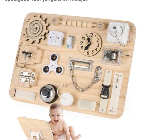 Ce produit est extrait d'une liste de naissance déposée sur Kadolog. Kadolog permet de créer des listes de naissance en toute liberté. Il est possible d'ajouter toutes vos envies cadeaux et de recevoir les dons directement sur votre compte. Avec les dons reçus, vous êtes alors libre d'aller acheter vos produits (comme ce 'Planche d’activités ') où et quand vous le souhaitez.