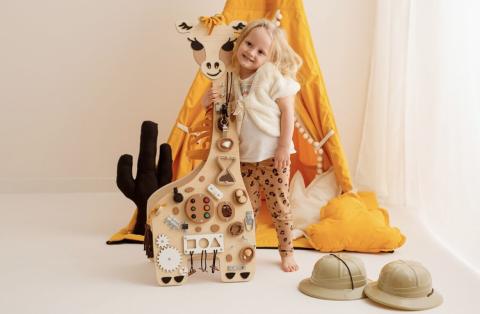 en toute liberté. Il est possible d'ajouter toutes vos envies cadeaux et de recevoir les dons directement sur votre compte. Avec les dons reçus, vous êtes alors libre d'aller acheter vos produits (comme ce 'Planche d’activités girafe