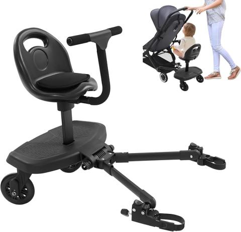 Planche de poussette pour toutes les poussettes, buggyboard avec siège, 50 kg, marchepied universel, 2 en 1, siège amovible, roues amortissantes rotatives à 360° pour 2 à 6 ans