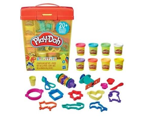 Ce coffret Play-Doh a tout ce qu'il faut : plus de 20 outils Play-Doh, 8 couleurs, une mallette de rangement et une surface de jeu amovible