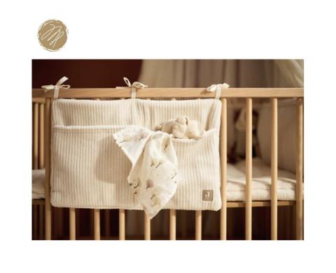 Sac de rangement à suspendre au lit à barreau. Ses poches spacieuses accueillent couches, langes, jouets ou accessoires de soin.