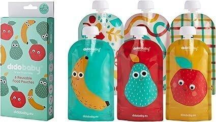 DIDOBABY Pack of 6 Reusable Baby Food Bottles - Fruit Bottles for Babies - Ideal Size for Beginners - Less Food Waste - Double Locking Leak Proof : Amazon.fr: Baby Products