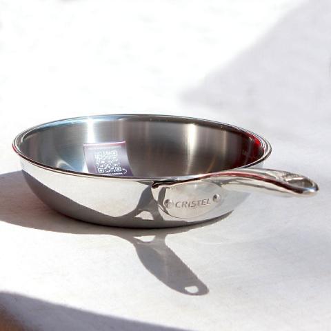 Une poêle en inox 18/10 avec un manche riveté de la gamme Castel Pro de l’excellente maison Cristel. Sa particularité est d'avoir un corps en inox tout en rondeur avec trois couches d'aluminium encapsulées pour une montée en chauffe ultrarapide et une cuisson parfaitement homogène. Un produit d'exception qui permet de