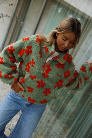 Polaire chaud Fleurs oranges Notre modèle porte le jeans Guetta bleu Poches à l'avant Ophélie porte Zip argenté Légèrement loose Chaud Taille unique (convient du 34 au 42) Longueur 58 cm - Largeur 58 cm