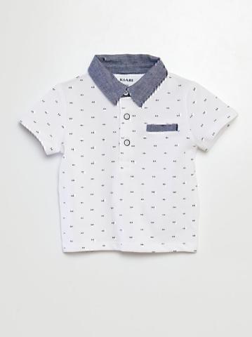 Pour être aussi stylé que les grands ! - Polo en coton piqué - Col à pointes libres - Ouverture boutonnée - Manches courtes - Imprimé all-over