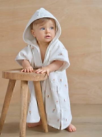 Poncho de bain bébé GIVERNY personnalisable, avec coton recyclé blanc imprimé -