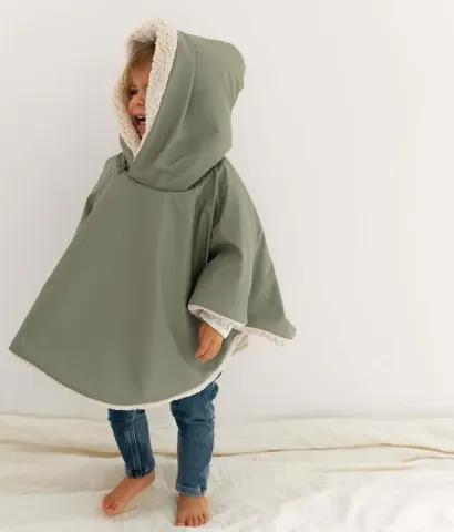 Extérieur imperméable uni vert kaki et intérieur sherpa écru certifiés sans substance nocive.