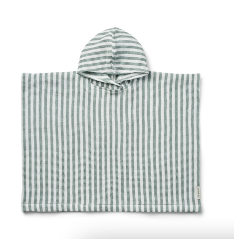 PONCHO À CAPUCHE EN COTON BIOLOGIQUE Compagnon parfait pour les aventures estivales, le poncho Paco est idéal pour les vacances et les journées à la plage, après une baignade pour se protéger du vent ou du soleil. Léger et doté de côtés ouverts pour plus de flexibilité. Poncho en coton à texture gaufrée Matière : 100