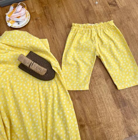 Description Pantalon unique cousu à la main dans un coton jaune à ronds vert d'eau.Coupe ample pour bouger librement, taille élastique douce.Un vêtement solide, pensé pour vivre longtemps. Détails • Matière : 100% coton provenant d'une housse de couette • Entretien : lavage à 30°, séchage à l’air libre