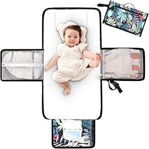 Lekebaby Portable Nappy Changing Mat Travel Baby Change Mat with Wipe-Pocket and Head Cushion, Jungle.